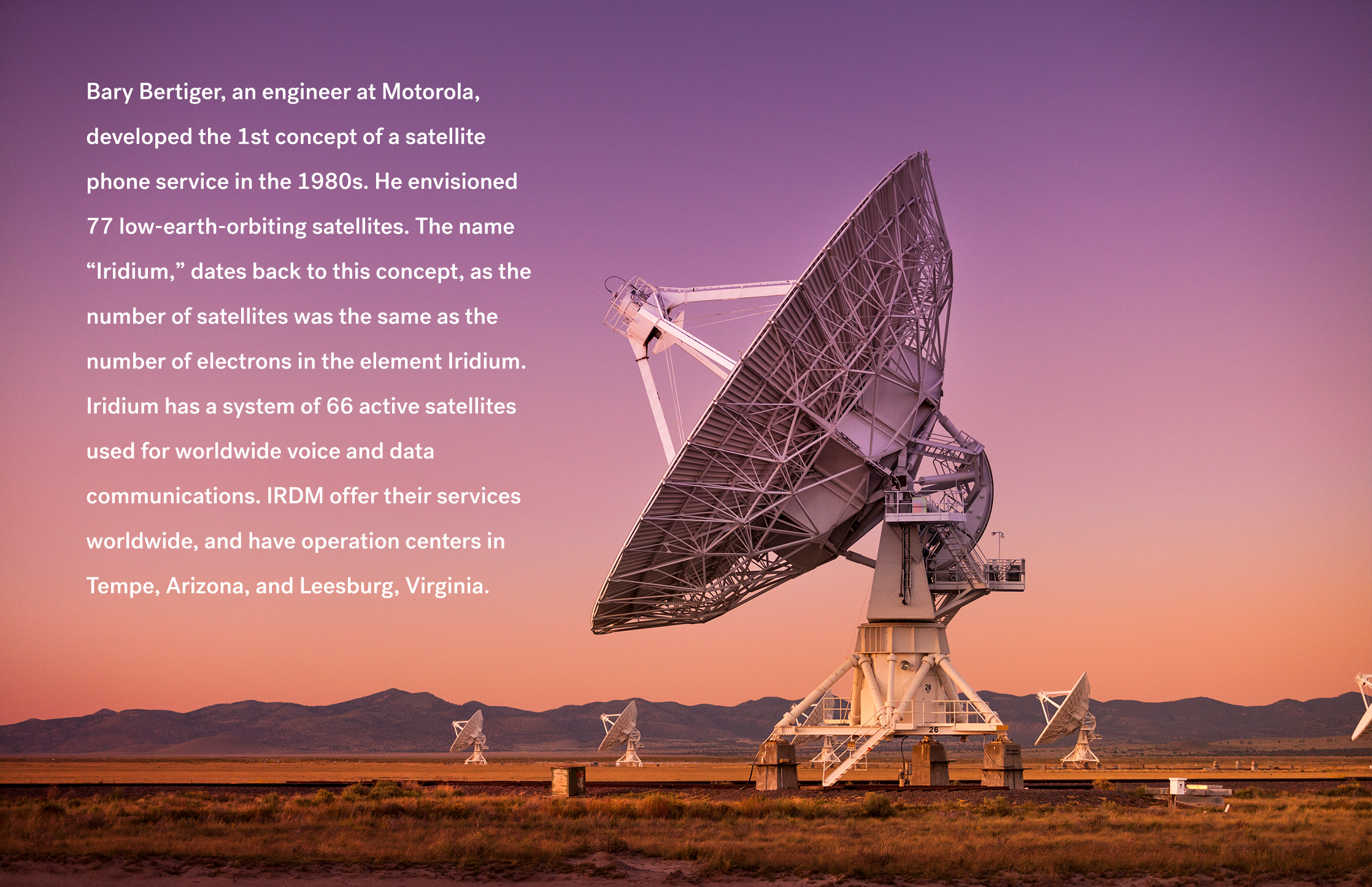 Iridium Communications was founded in 2001 and their headquarters are based in McLean, Virginia, USA.